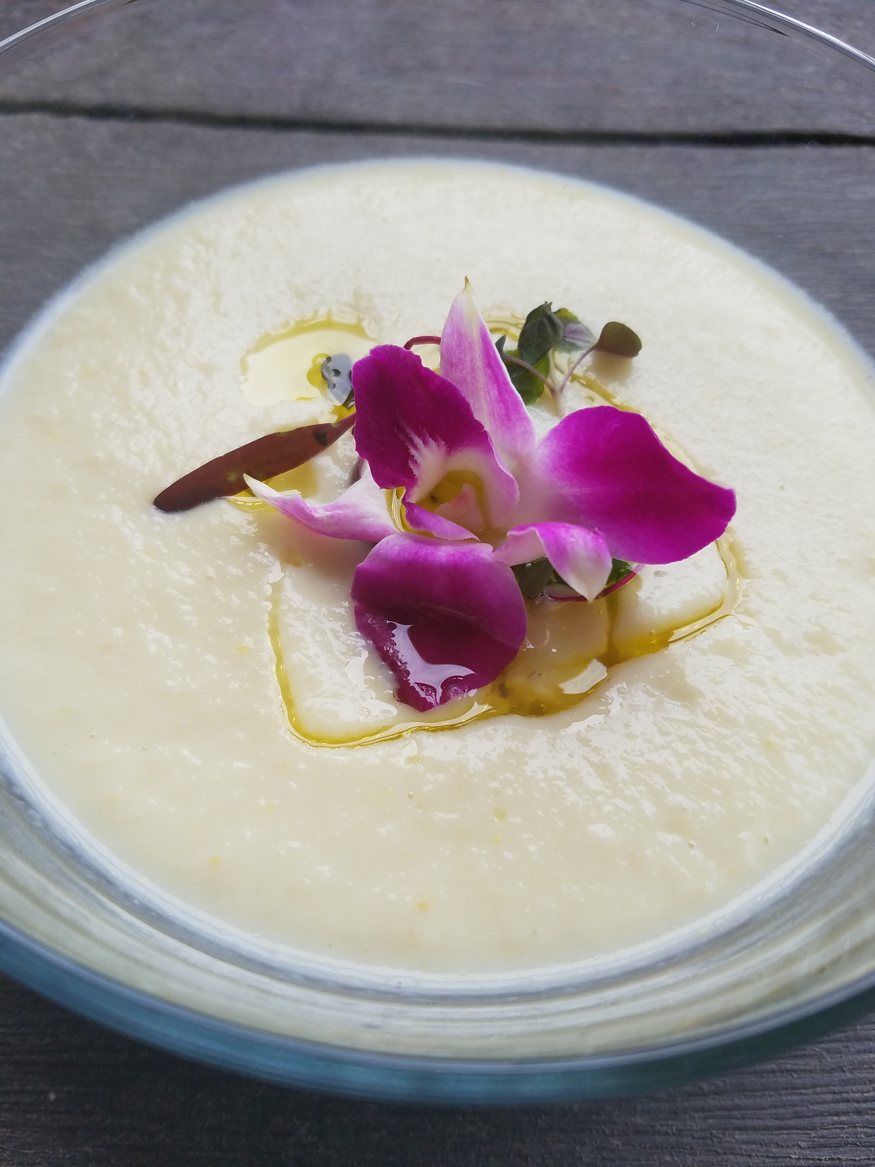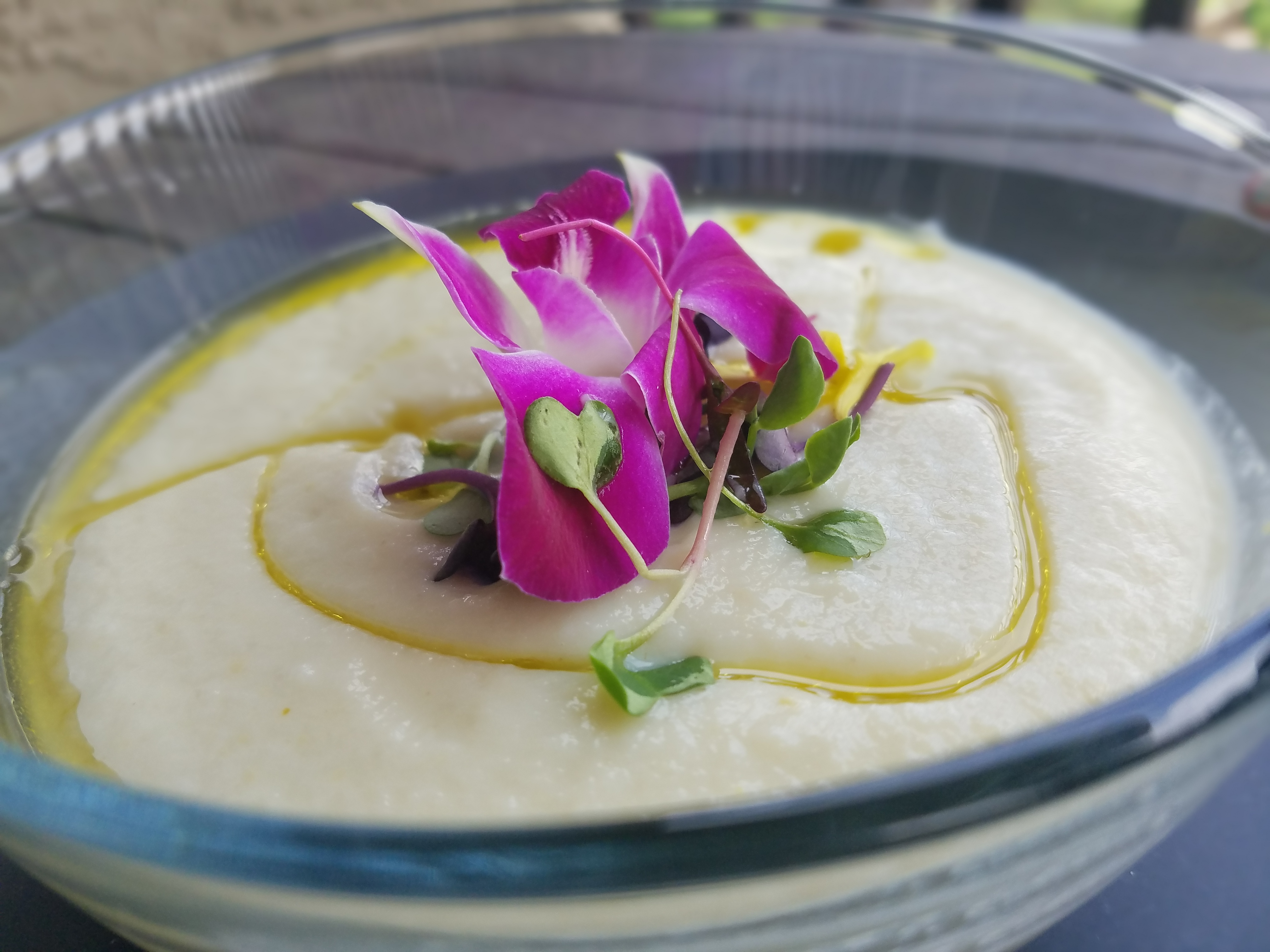 As for decoration drizzle the oil on top add the micro greens and the flowers ..