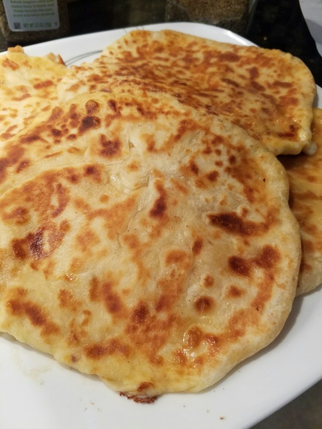 Fry at medium high heat , brush with butter both sides of the pita bread